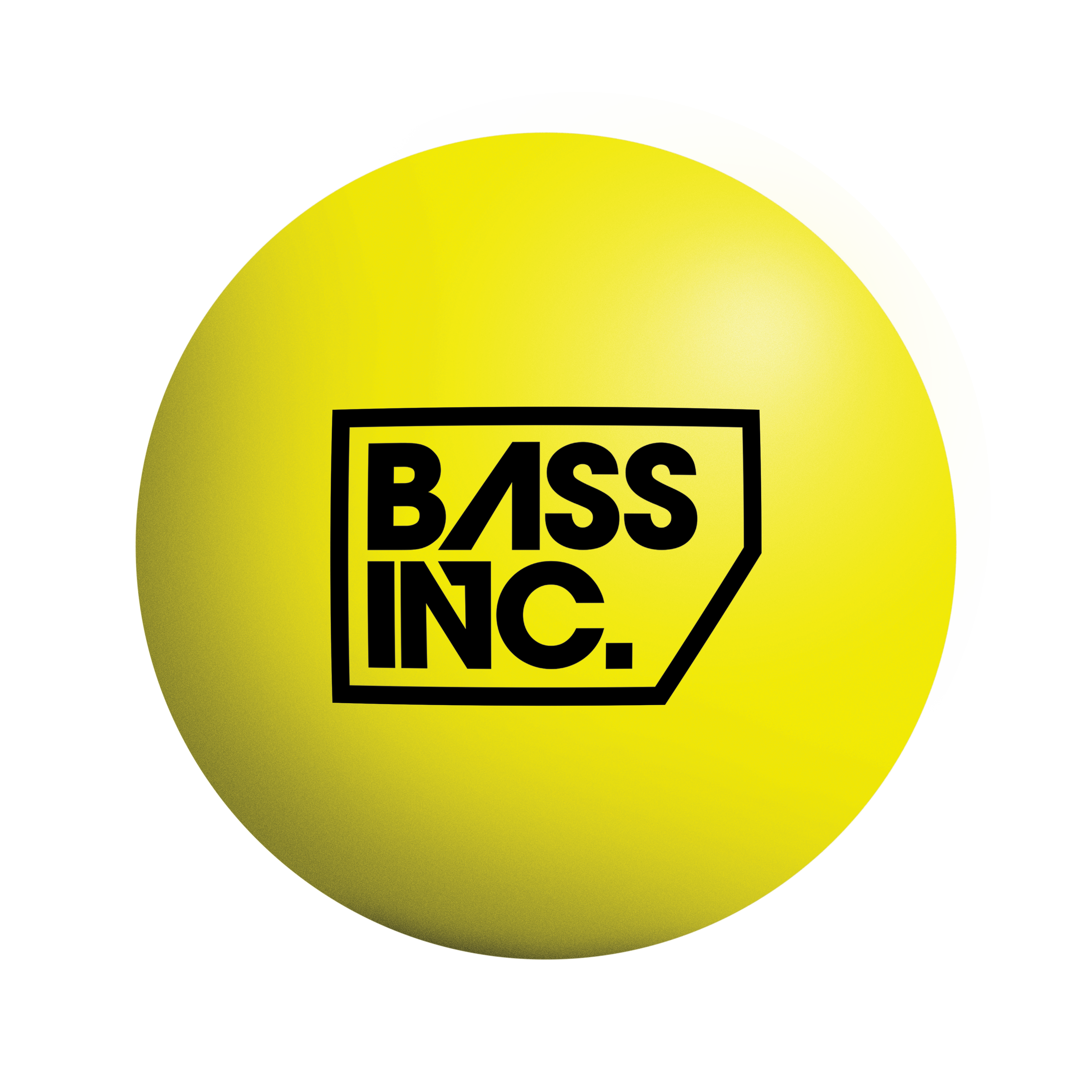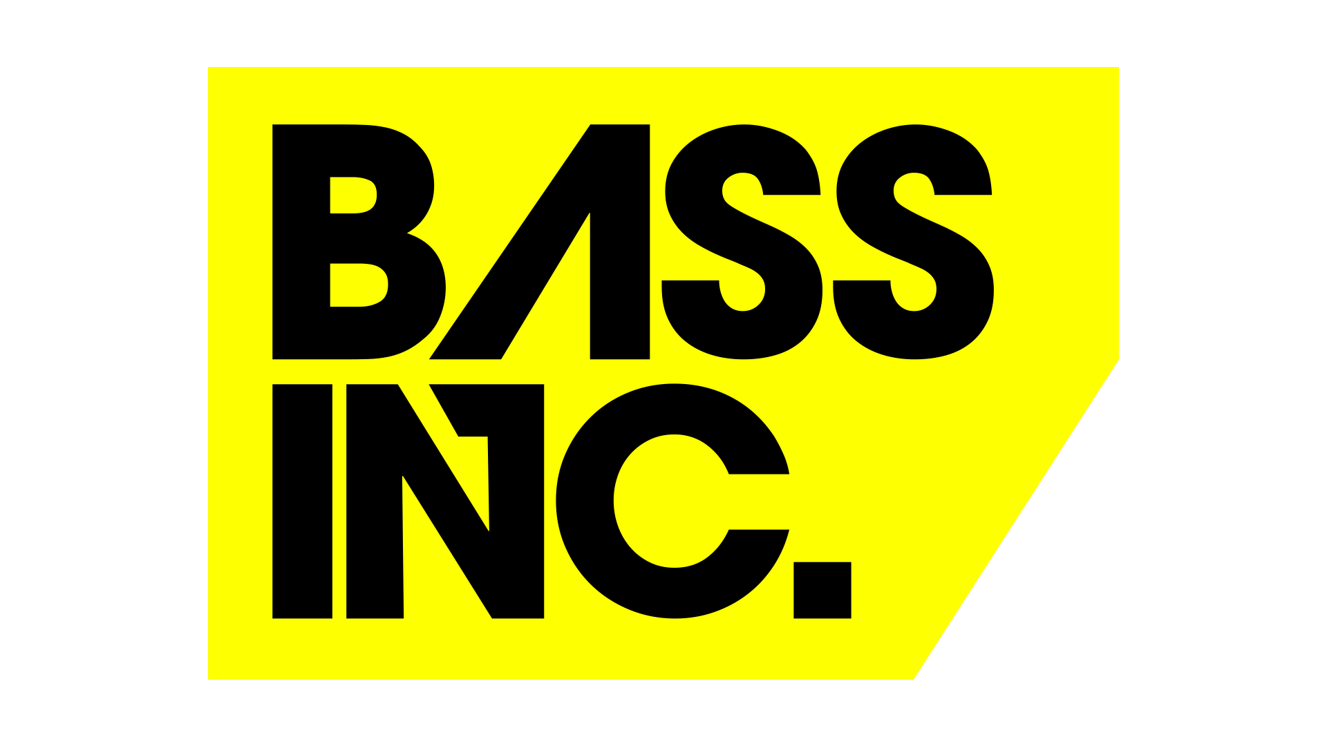 Bold condensed sans-serif. Angular parallelogram shape — wider at top-left, angled cut at bottom-right. 'BASS' on first line, 'INC.' on second.